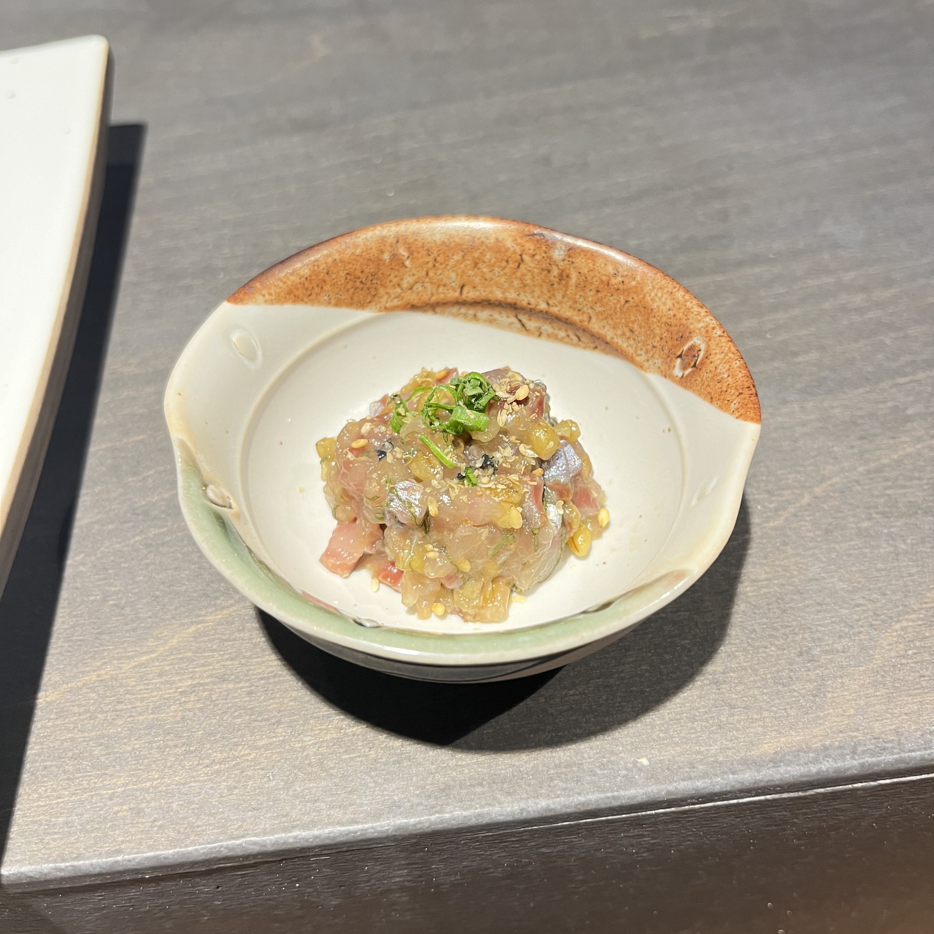 도미 한치 참돔 가리비 관자 초새우 단새우 참치 뱃살 참치 속살 광어 지느러미 청어 초밥 (with 페스토) 아나고 (붕장어) 계란요리스시는 총 13개가 나왔는데, 손으로 받아서 먹어야 하는 게 2개라 사진은 못 찍었네요 ㅠㅡㅠ